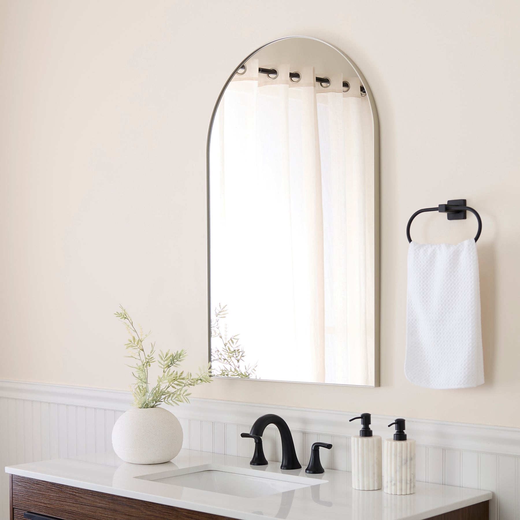 Our collection offers a range of mirrors that are affordable and functional, making them suitable for various applications in homes, apartments, or commercial spaces. These mirrors are designed to be practical and versatile, with straightforward designs that can easily fit into different interior styles. Choose from several shapes and sizes in a variety of finishes. The Arch mirror's arched contour has a 1-inch extension and a matte black, silver, or gold finish in a 24"x38" or 29"x46" frame.