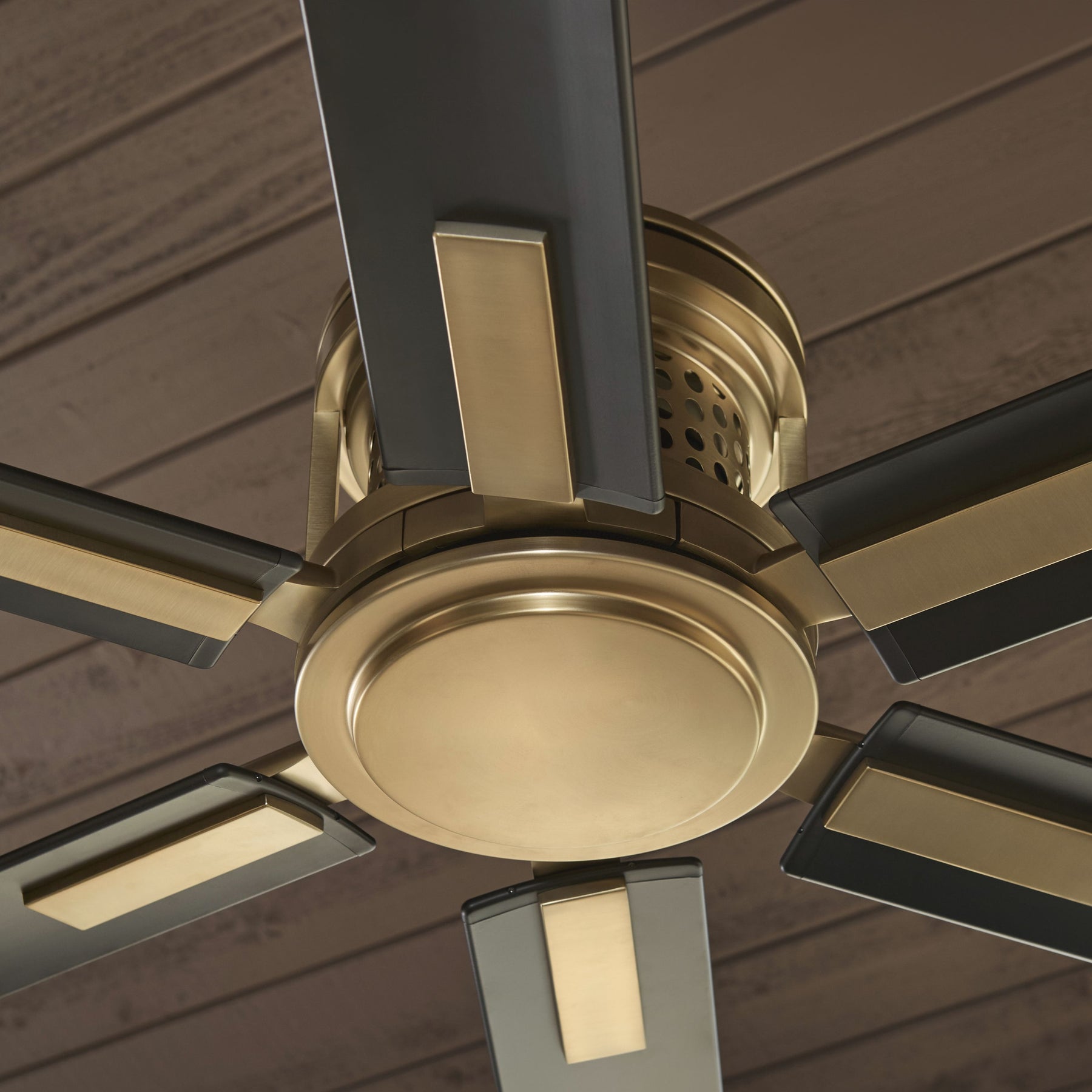 Showstopping and dynamic, the might of the Zeus series of damp-listed fans is demonstrated through built-in Wi-Fi and options of 65", 80", and 120" blade spans. Customizable comfort comes with six speeds and an optional LED light kit (sold separately). The Zeus fan includes a wall-mounted pocket remote control and three 96" safety cables with hardware for added support from high winds in outdoor installations. Enjoy a powerful airflow in all of your favorite indoor or outdoor spaces. Choose from aged brass, matte black, satin nickel, and studio white finishes.