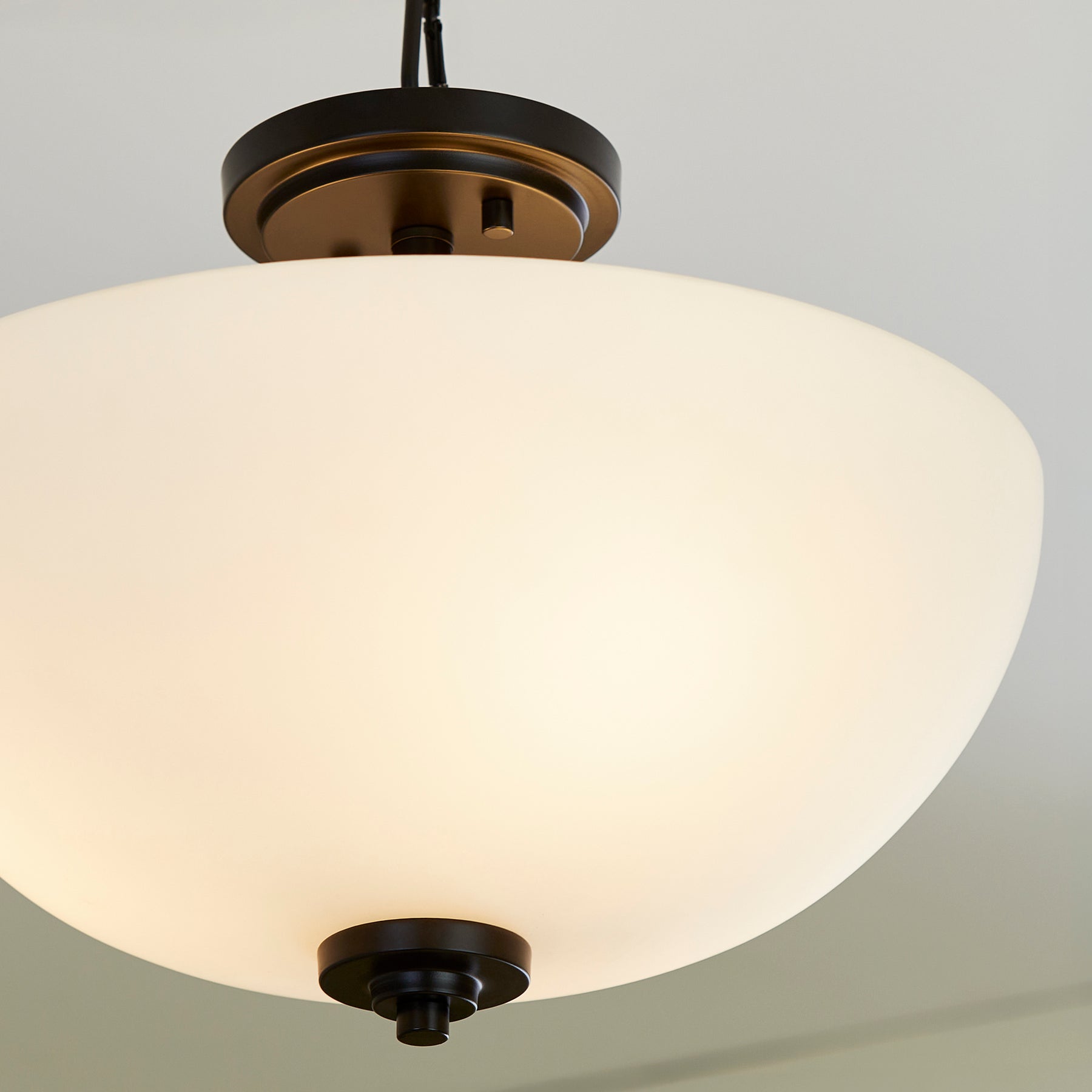 Blending traditional charm with practical versatility, the Adam collection features a dome-shaped shade in your choice of satin opal or hammered glass. Finished in matte black, satin nickel, or aged brass, this collection includes a pendant and flush mount design. Upgrade your spaces today with the Adam series.