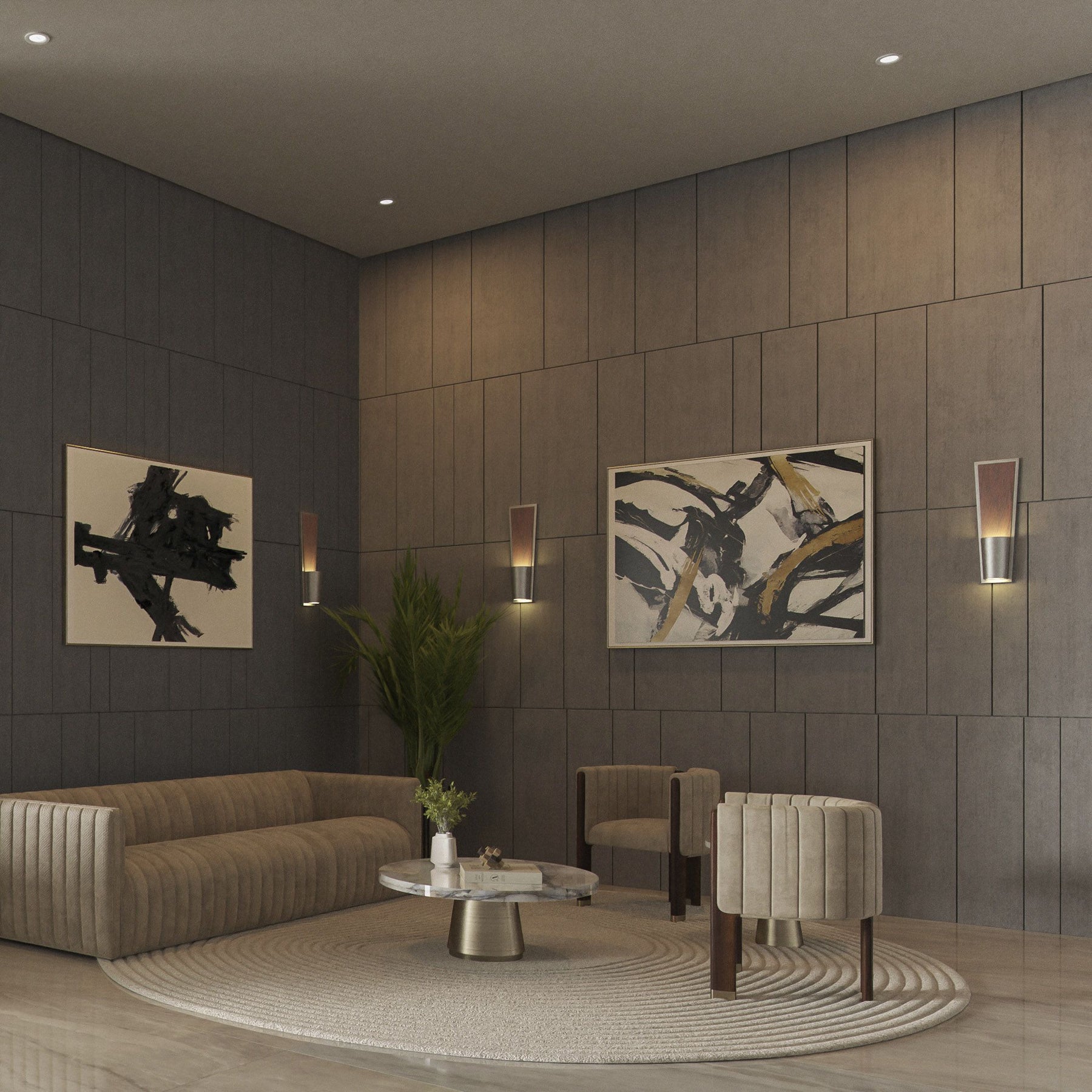 The Favero fixture casts a beautiful glow from both ends, following its form and highlighting the richness of the walnut finish. Choose aged brass for added warmth or satin nickel for a sleek touch—available in a range of color temperatures to suit your space.