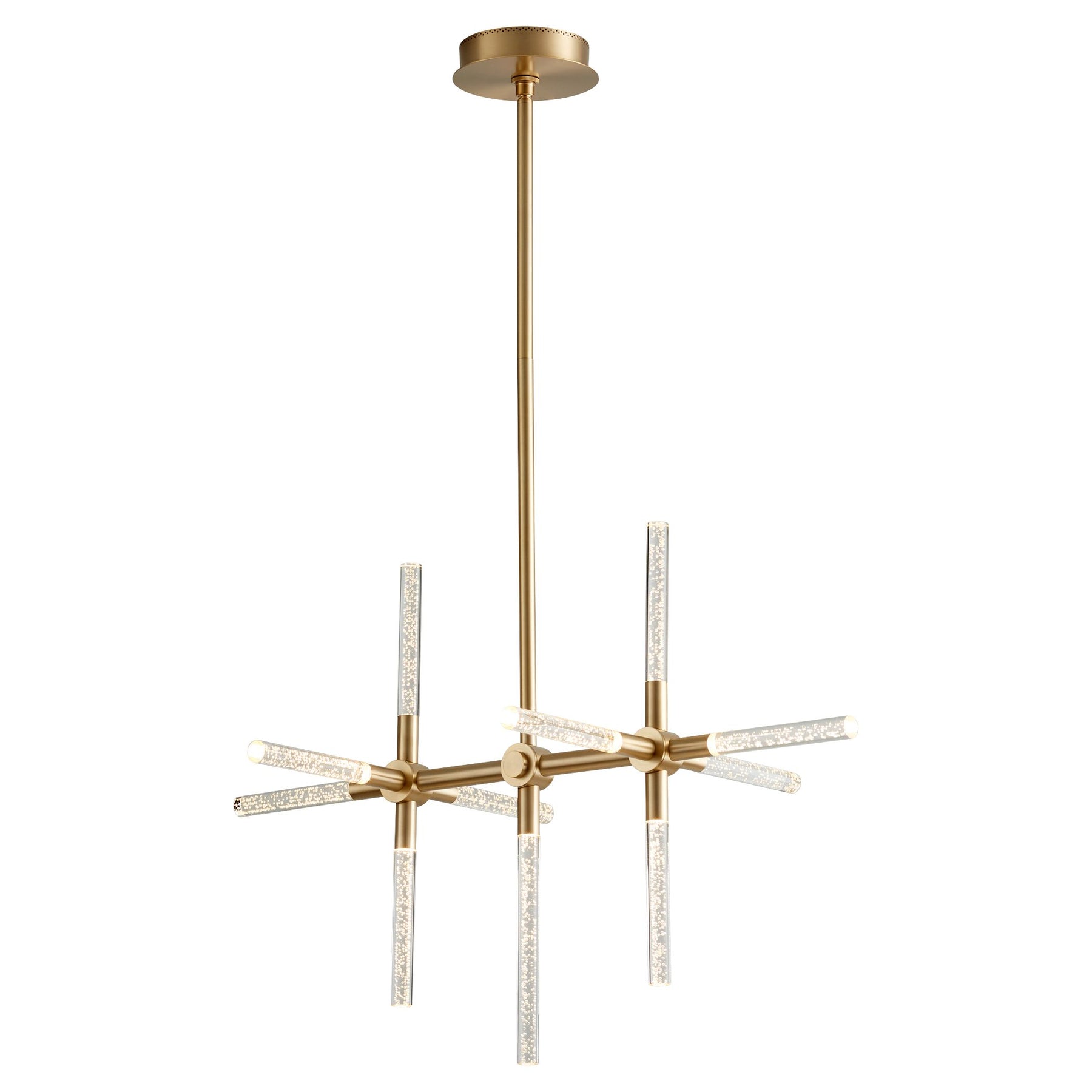 A bold centerpiece with celestial balance, the Tali eleven-light chandelier radiates modern elegance with its starburst structure and precision-lit clear bubble acrylic rods. Featuring integrated 3000K dimmable LEDs, this sculptural fixture glows with energy-efficient brilliance. Available in aged brass or satin nickel, each finish brings its own character to this constellation-inspired form. Perfect for open living spaces, upscale dining rooms, or design-forward foyers, Tali’s eleven-arm silhouette makes a luminous architectural statement.
