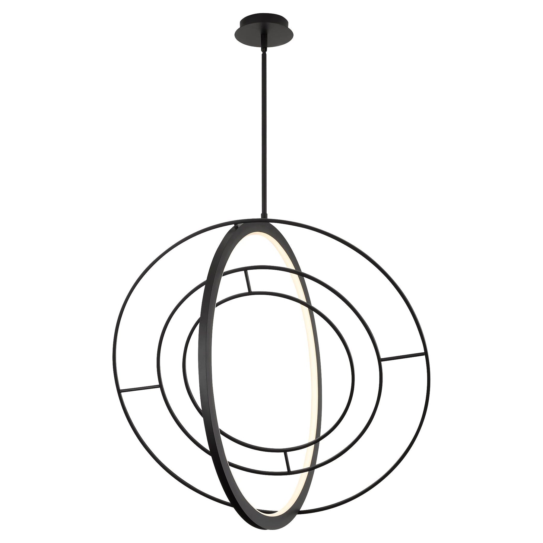 Inspired by the armillary sphere, Galilei is a modern expression of a classical design. It's lamped with an acrylic frosted diffuser along the inner circumference of a fixed meridian ring, with three movable inner halos representing equatorial, polar, and ecliptic rings. Galilei combines striking elegance with bold design, whether in black or aged brass, perfect for spaces that demand a statement.