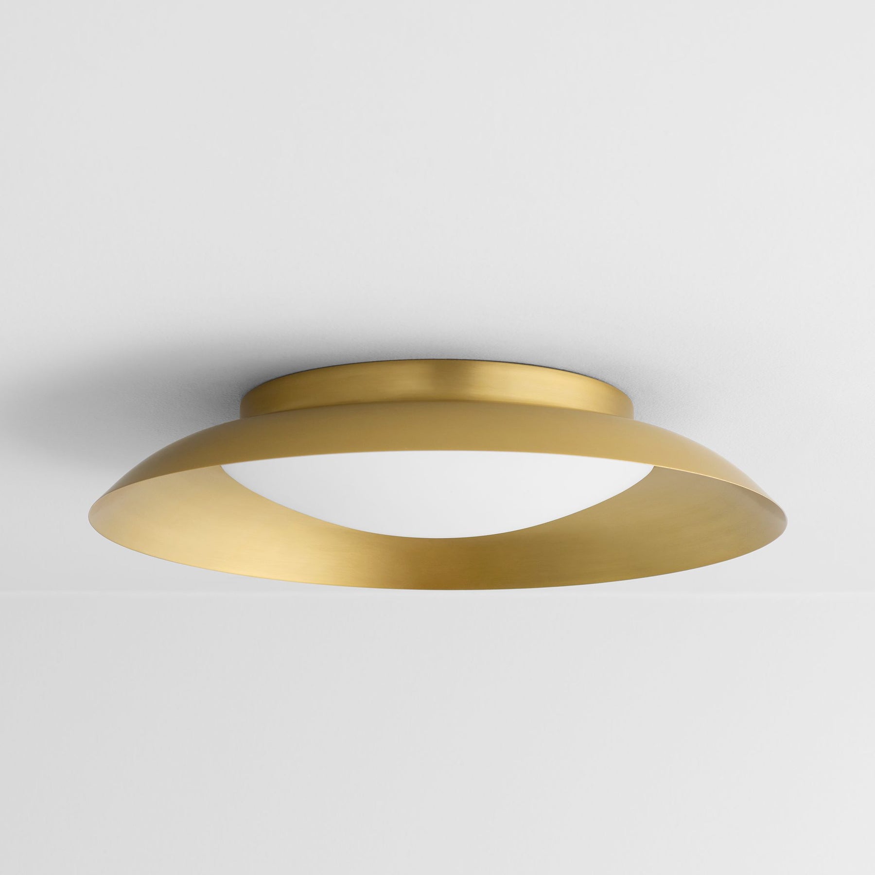 Illuminate your space with the powerful glow of the 20-inch Bongo LED, featuring a 24-watt LED with a high CRI of 90 and a customizable CCT. This versatile fixture operates on a wide voltage range of 120-277v, ensuring compatibility with various electrical systems. The Bongo LED boasts a contemporary short dome shape, adding a touch of modern sophistication to any room. The matte white diffuser in the center creates a soft and even illumination, enhancing the ambiance of your space. Choose from the classic finishes of aged brass, sleek black, or timeless white to complement your interior decor.