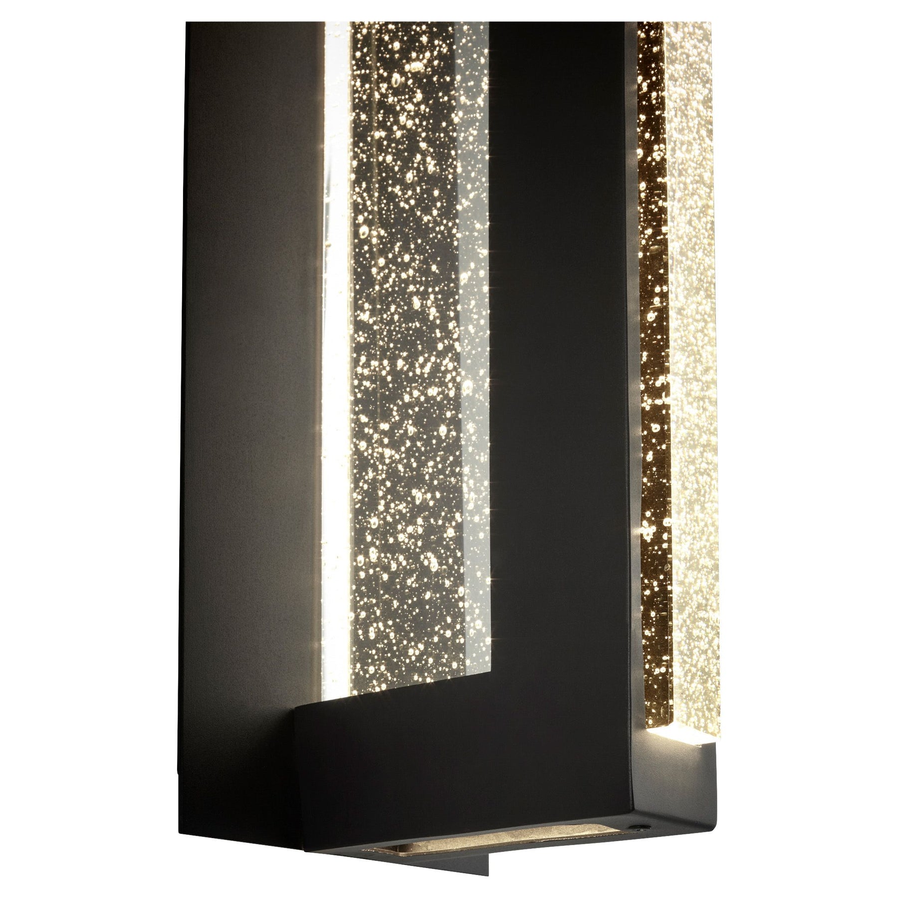 The Taurus wall sconce brings sculptural depth and brilliant clarity to outdoor and indoor walls alike. Framed in bold black and housing a clear bubble crystal glass diffuser, this wet-rated fixture sparkles with prismatic elegance, day or night. Available in 12″ or 18″ height, Taurus delivers powerful dimmable LED illumination, making it a striking accent for entryways, corridors, patios, and architectural facades. A balance of durability and design, the Taurus merges modern form with luxury-grade materials.